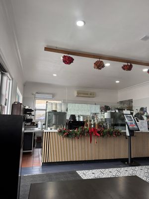 This was a super cute coffee shop. It's a little bit in an awkward. It's right under the freeway and on a busy street. The parking lot has probably 20 spaces at most, but we needed to park along the f
